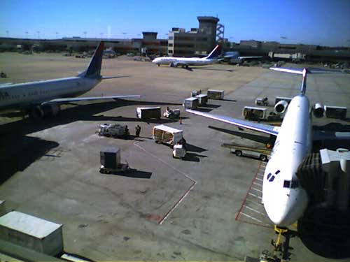 21 Dec 04: Headed to the Northeast yet again! This is a picture from the B-concourse Crown Room in Atlanta. Across the way is the A concourse and one of Ed's favorite aircraft, the Boeing 737-200 - "a beachball with wings and a tail!"