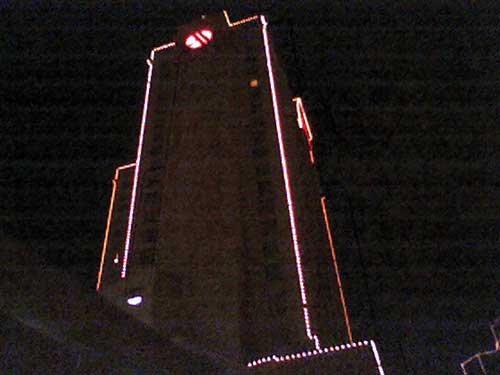 12 Dec 04: Went back to Portsmouth for another ship visit. Notice a trend? We always seem to get squeezed at the end of the year. Here's a picture of our hotel on a Sunday night. I was on the 18th floor. Notice that there's only one light on way up there. Wonder who *that* is... Oops.